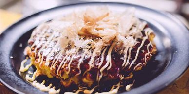 Japanese Wagyu Okonomiyaki , glass of sake or edamame plate - £25